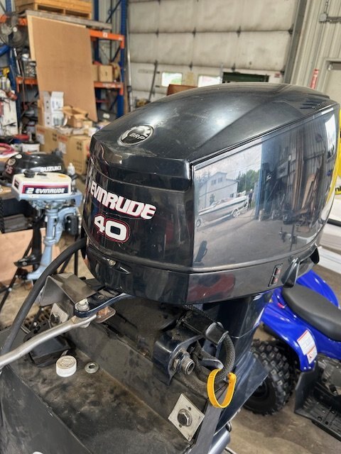ONLY 250 HOURS. USED EVINRUDE 40HP E-TEC. RUNS WELL. CONTROLS AND TAXES EXTRA.