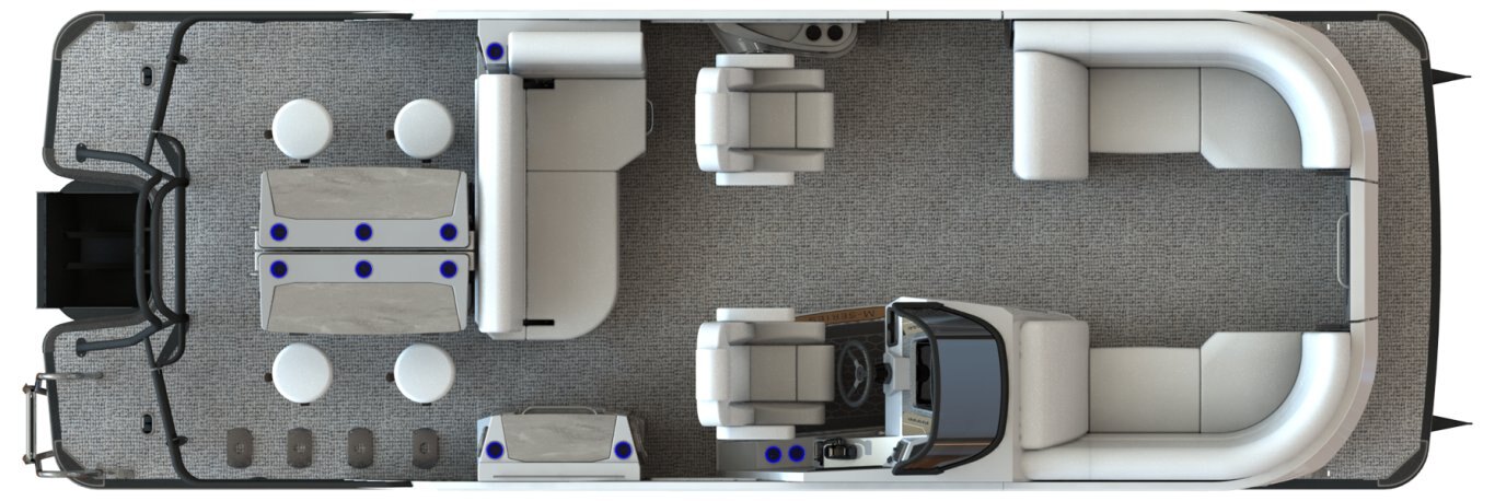 The Sylvan M3 DLZ DH Bar is the epitome of luxury and high performance, offering an unparalleled boating experience. This sophisticated pontoon features a dual rear lounge and dual helm chairs, providing generous seating and comfort for both guests and the captain. It’s equipped with premium details like Cool Touch vinyl for a more comfortable ride on even the hottest days, and the SPX third tube performance package for enhanced stability and superior handling on the water. The sleek carbon fiber panels add both style and durability, making the M3 DLZ DH Bar a standout option for those seeking a top-tier boat. The highlight of this model is its convertible rear bar, which transforms from a chic four-person bar into a spacious full rear lounge area, offering versatile entertainment and relaxation space for all.