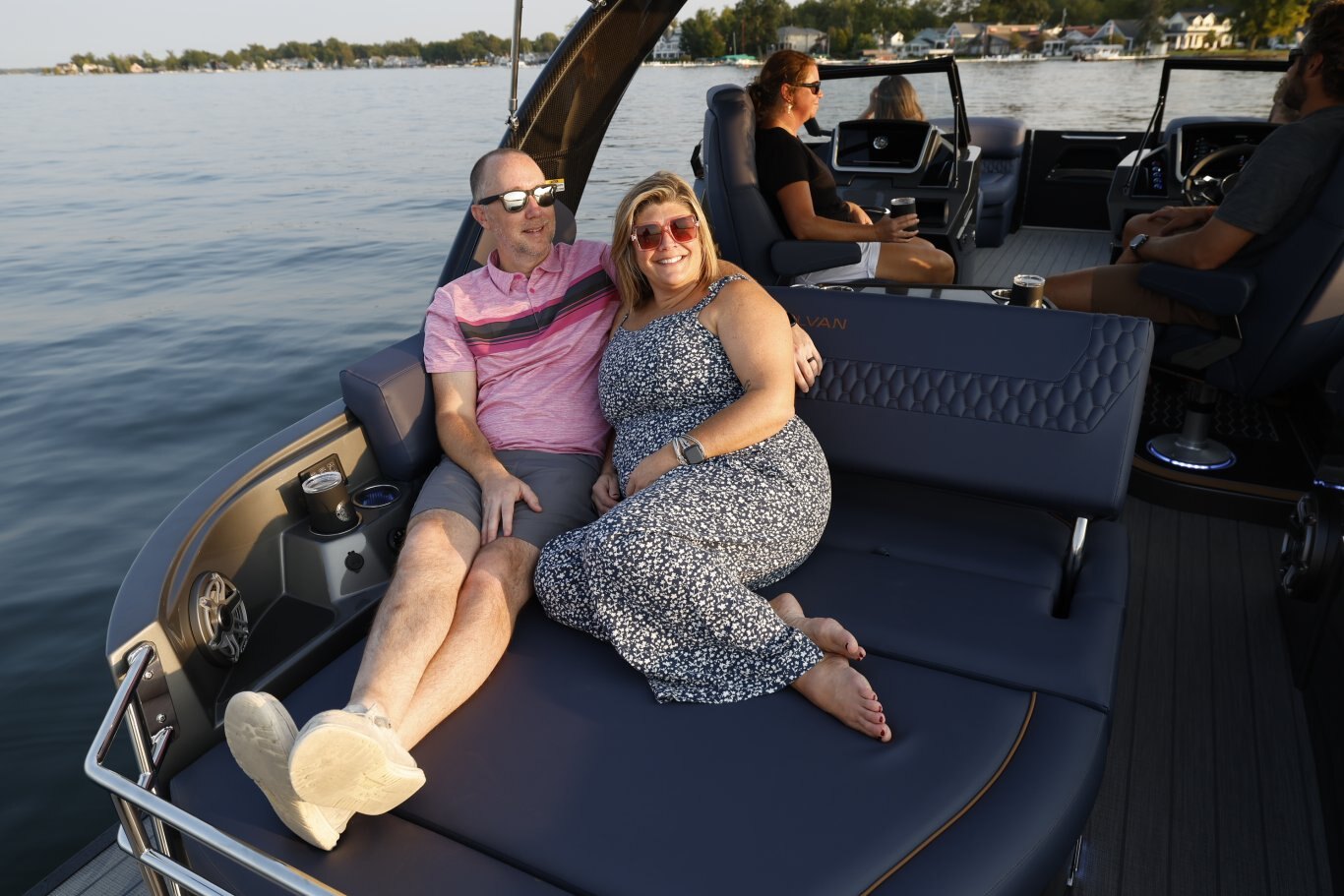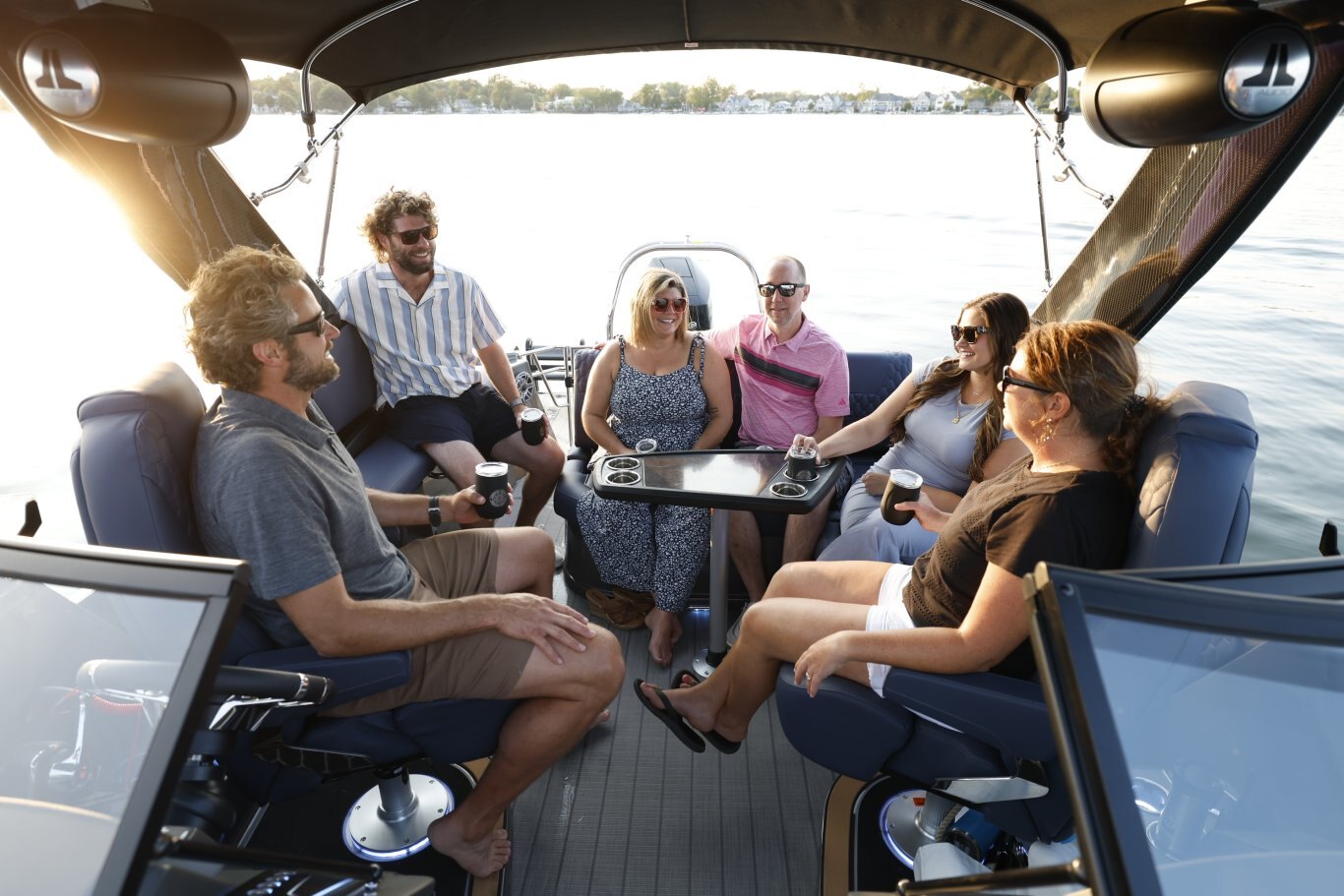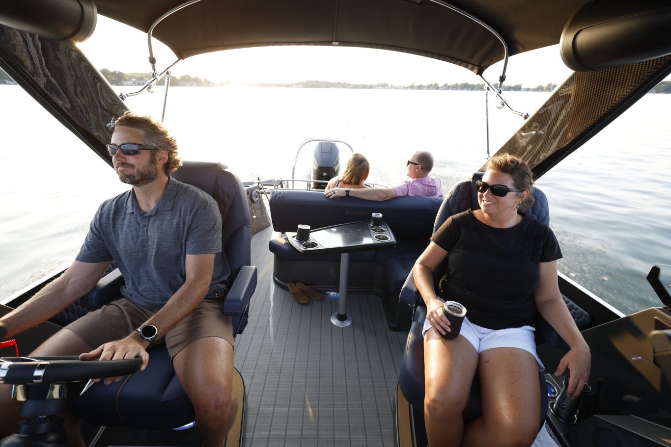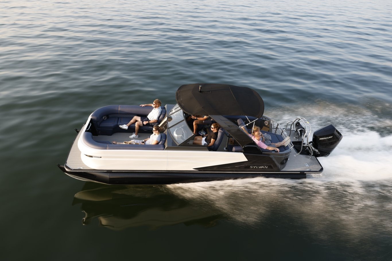 The M-5 CLZ DC from Sylvan pontoon is a luxury pontoon with a unique layout that the whole family will enjoy. The stern of this luxury pontoon boat from Sylvan pontoons is equipped with a convertible flip back rear lounge perfect for a sunset cruise or rear facing to spot a skier. Plus, the M-series from Sylvan pontoon offers high features such as soft touch upholstery, interior LED lighting, and side by side helm stations. Making the M-5 CLZ DC from Sylvan pontoons one of the best pontoons boats you will find.