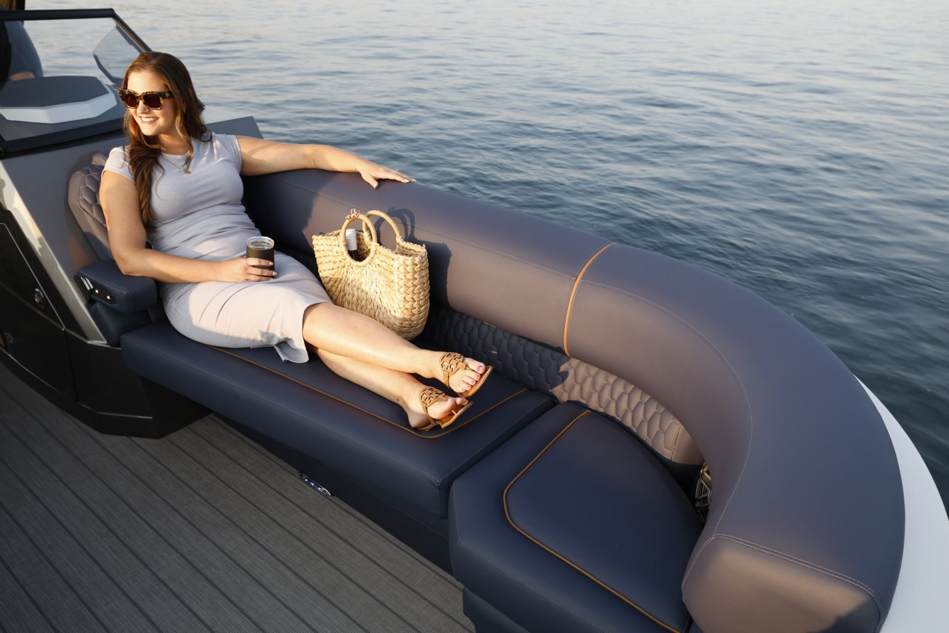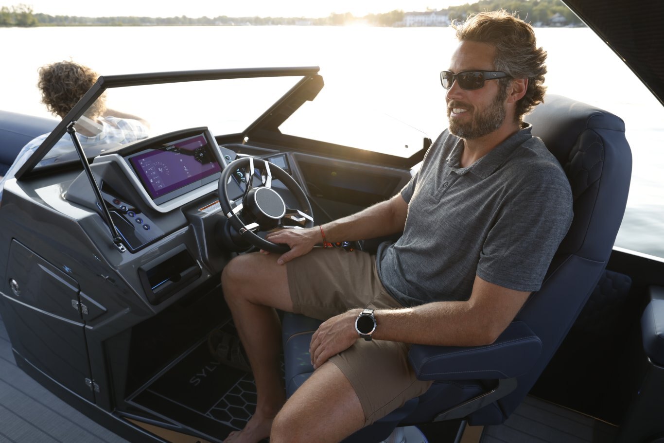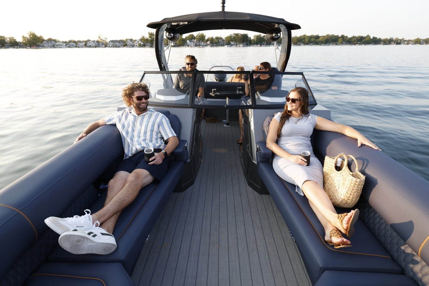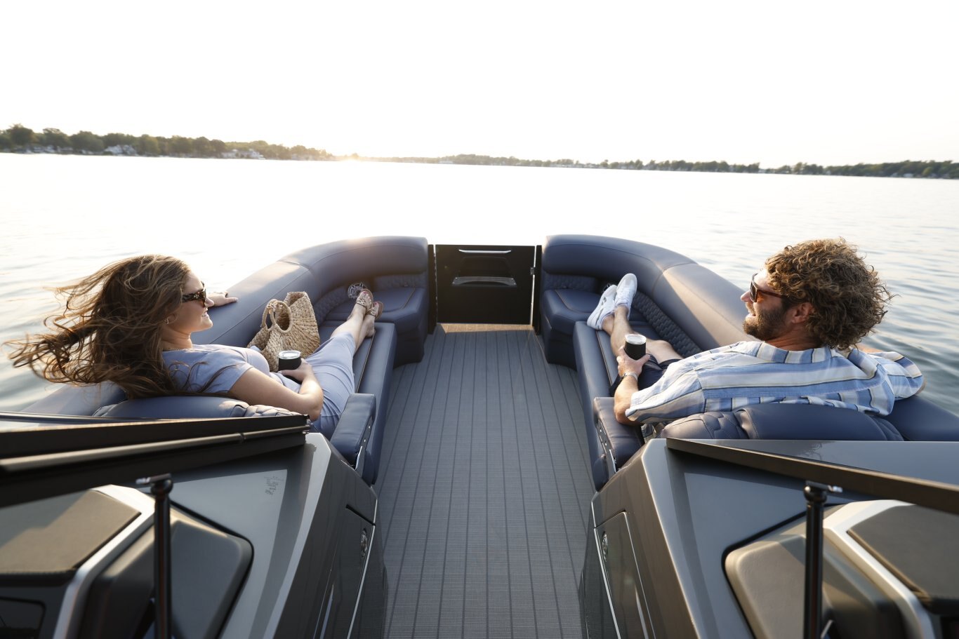 The M-5 CLZ DC from Sylvan pontoon is a luxury pontoon with a unique layout that the whole family will enjoy. The stern of this luxury pontoon boat from Sylvan pontoons is equipped with a convertible flip back rear lounge perfect for a sunset cruise or rear facing to spot a skier. Plus, the M-series from Sylvan pontoon offers high features such as soft touch upholstery, interior LED lighting, and side by side helm stations. Making the M-5 CLZ DC from Sylvan pontoons one of the best pontoons boats you will find.