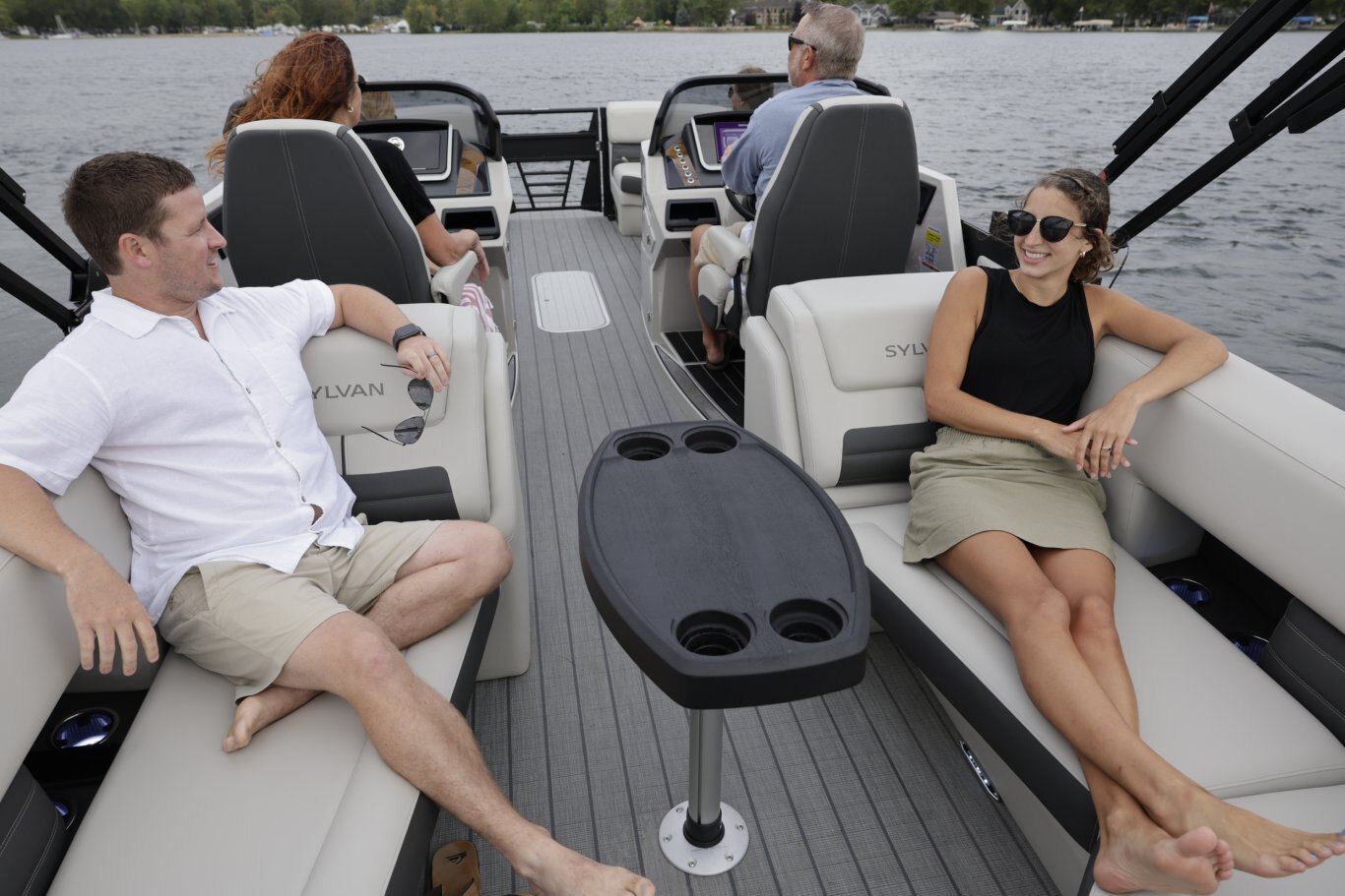 The G5 LZ DC from Sylvan Pontoon Boats epitomizes luxury while catering to family-friendly needs with its thoughtfully designed layout. Featuring side-by-side captain chairs, interior LED lighting, and wrap-around front and rear couches to optimize seating capacity, this pontoon boat offers both comfort and convenience. Sitting atop Sylvan Pontoon Boats' third tube SPX performance tube technology, the G5 LZ DC delivers the performance and handling you desire in a pontoon. If you're seeking a performance-driven pontoon that's among the best on the market, look no further than the G5 LZ DC from Sylvan Pontoon Boats.