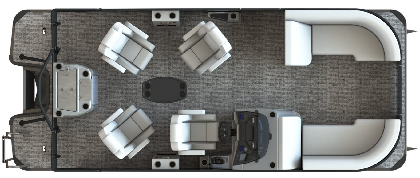 The Sylvan L1 QHS embodies the essence of a family-friendly pontoon, featuring four rear high-back helm chairs that all swivel and slide, offering versatile seating arrangements for leisurely outings on the water. Whether basking in scenic views or enjoying lively conversations, these comfortable seats provide the perfect spot for relaxation. With the standard SPX third tube performance package, this pontoon ensures stable and smooth cruising, promising a safe and enjoyable journey for all aboard. Its sleek black exterior rails add a touch of modern style, making it stand out on any lake or river. Equipped with an integrated ski tow, the Sylvan L1 QHS is primed for thrilling water sports adventures. Additionally, a power canopy provides shade from the sun, ensuring everyone stays comfortable during extended outings. Loaded with family-friendly features, this pontoon is the ultimate vessel for creating cherished memories on the water with loved ones.