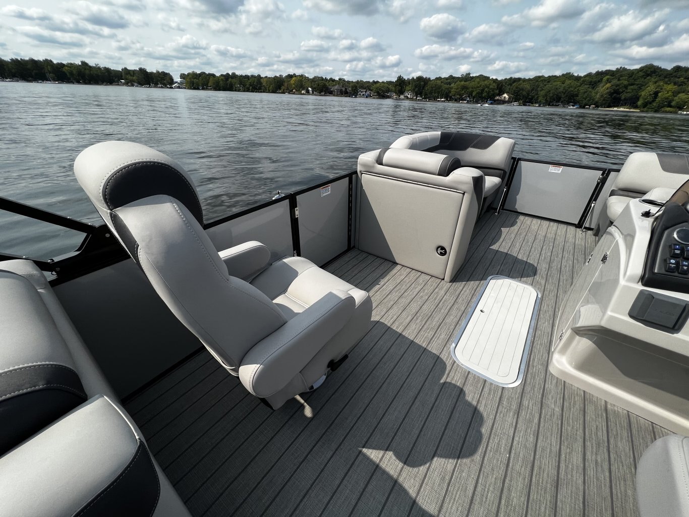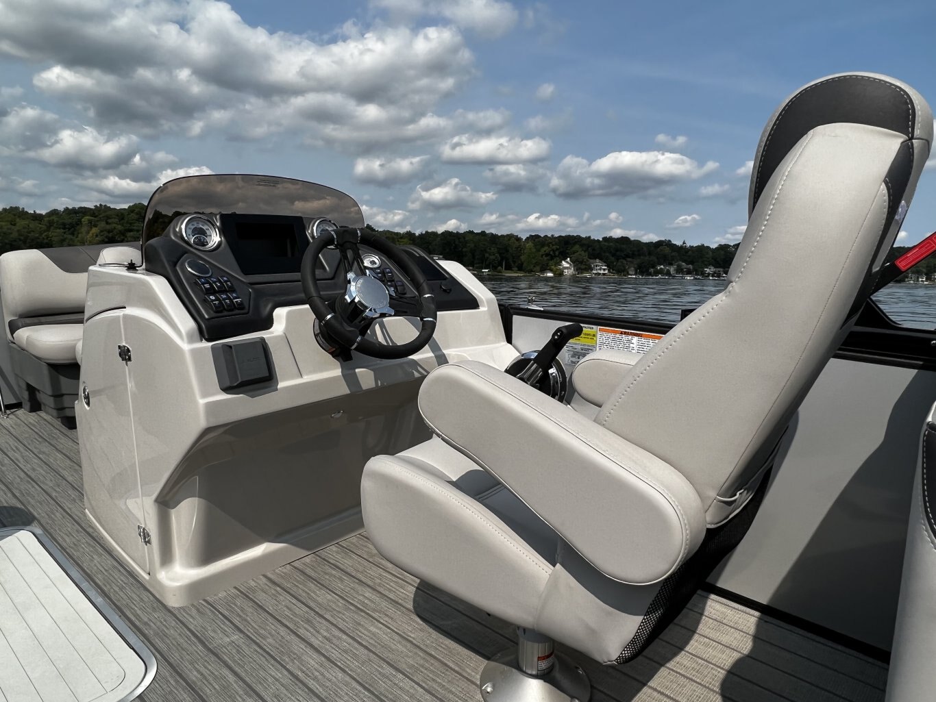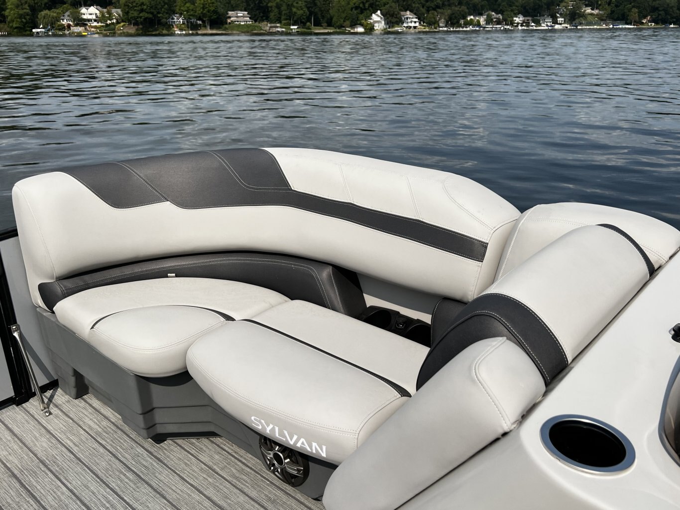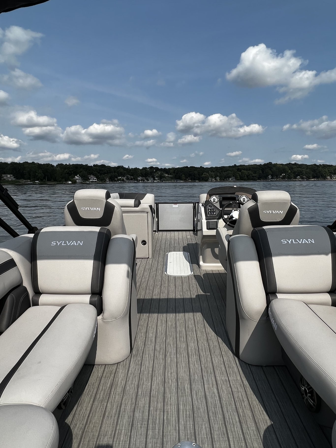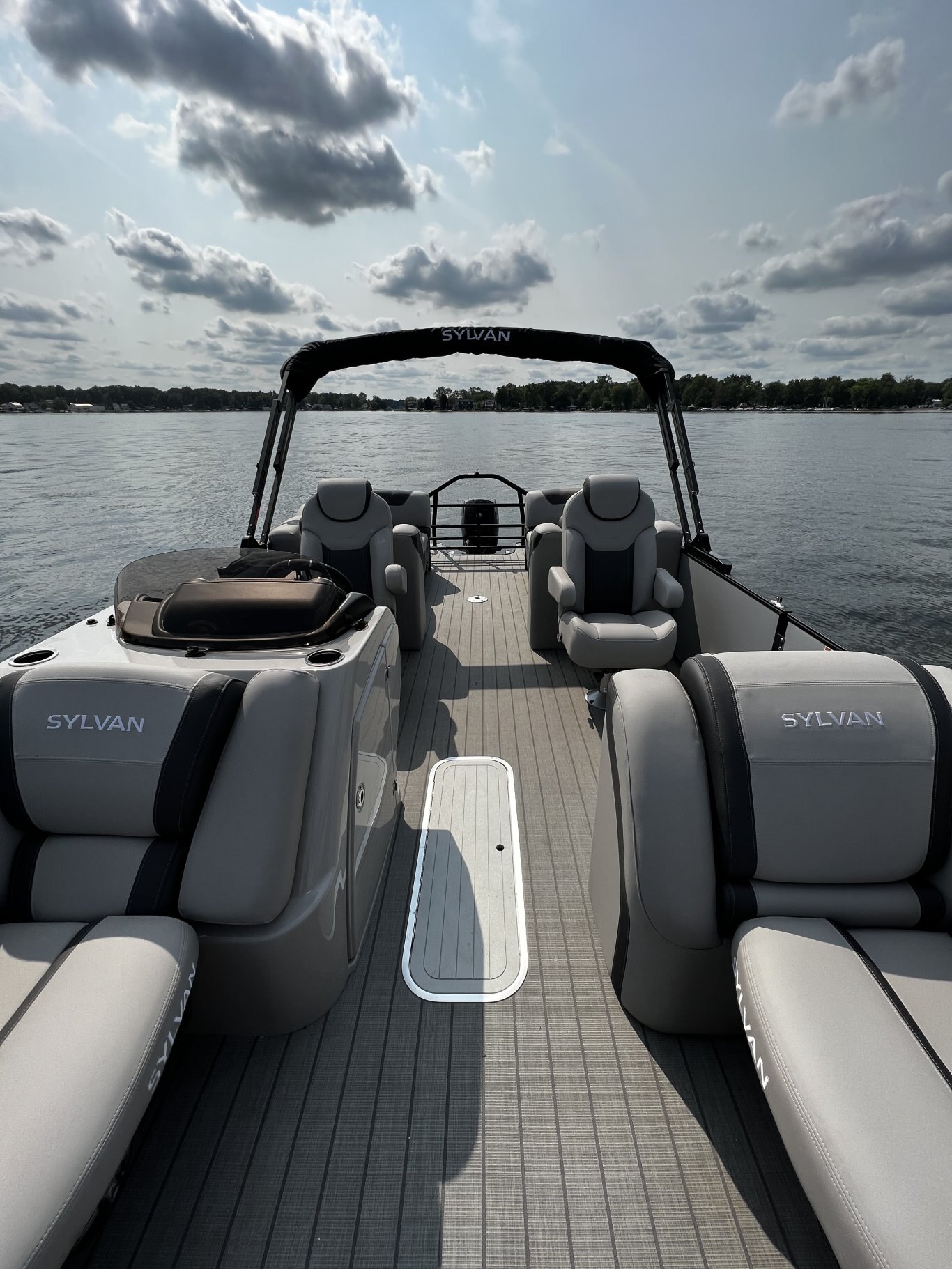 The Sylvan pontoon L3 LZ elevates your on-water experience with its ingenious design, maximizing seating comfort with four wrap-around couches without compromising on luxury. This pontoon embodies the signature features that define the L-series from Sylvan, ensuring an indulgent outing every time. With the standard SPX third tube performance package, the Sylvan L3 LZ guarantees exceptional stability and effortless cruising, promising a safe and enjoyable journey for all passengers. Additionally, the standard power canopy provides ample shade, allowing you to bask in the sun or find refuge from its rays as you please. Whether you're lounging with friends or embarking on thrilling adventures, the Sylvan L3 LZ offers the perfect blend of comfort, performance, and style for unforgettable moments on the water.