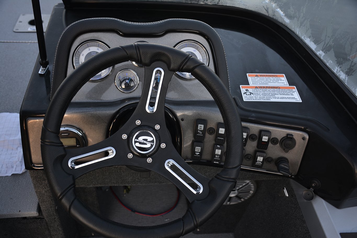 Miscellaneous Engine-House Dual Battery System IGTS Mood Lighting Yarblow Drying System (Requires Battery Charger) 3-Step Stainless Steel Boarding Ladder Fuel Water Separator Stereo Kicker KMC10 w/Bluetooth Ram Mount Hummingbird Sonar Unit Ram Mount Lowrance Sonar Unit Battery Charger Quick Disconnect Depth Gauge 12/24V Trolling Motor Extreme Steering (16’)