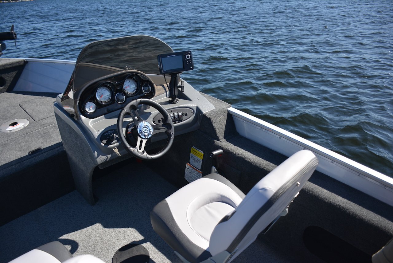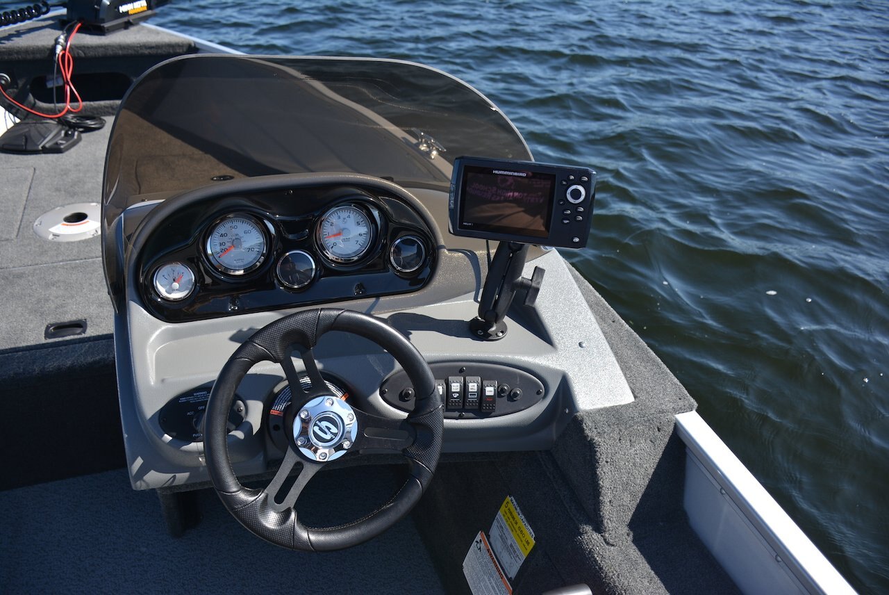 Automovtive style console with speedometer, tachometer, volt meter, and fuel gauge Lighted rocker switches .100”-guage once piece hull Large Bow and Stern casting platfoms Trolling motor plug Vinyl Cockpit Fishing Seats (3-172 , 2-162 & 161) Bow 25 gallon livewell Lockable, Top loading Port & Starboard Rod Storage Lifetime +6 Warranty
