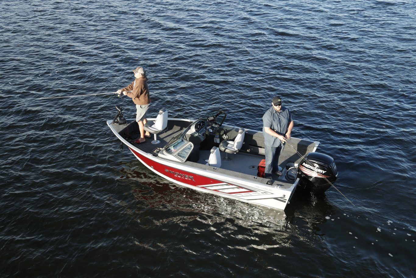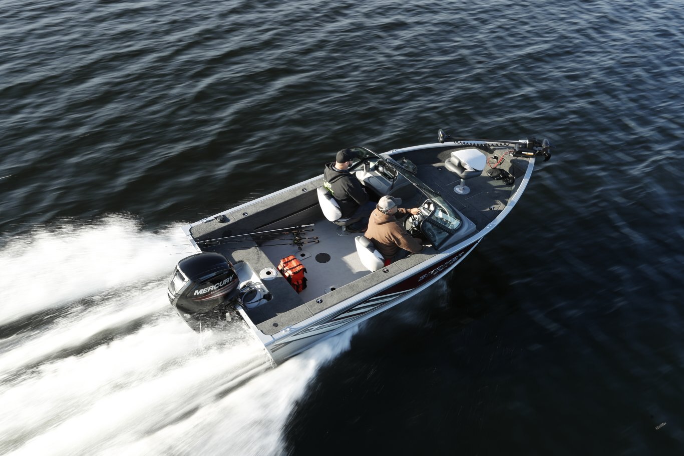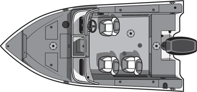 Automovtive style console with speedometer, tachometer, volt meter, and fuel gauge Lighted rocker switches .100”-guage once piece hull Large Bow and Stern casting platfoms Trolling motor plug Vinyl Cockpit Fishing Seats (3-172 , 2-162 & 161) Bow 25 gallon livewell Lockable, Top loading Port & Starboard Rod Storage Lifetime +6 Warranty