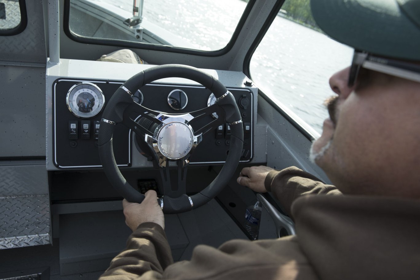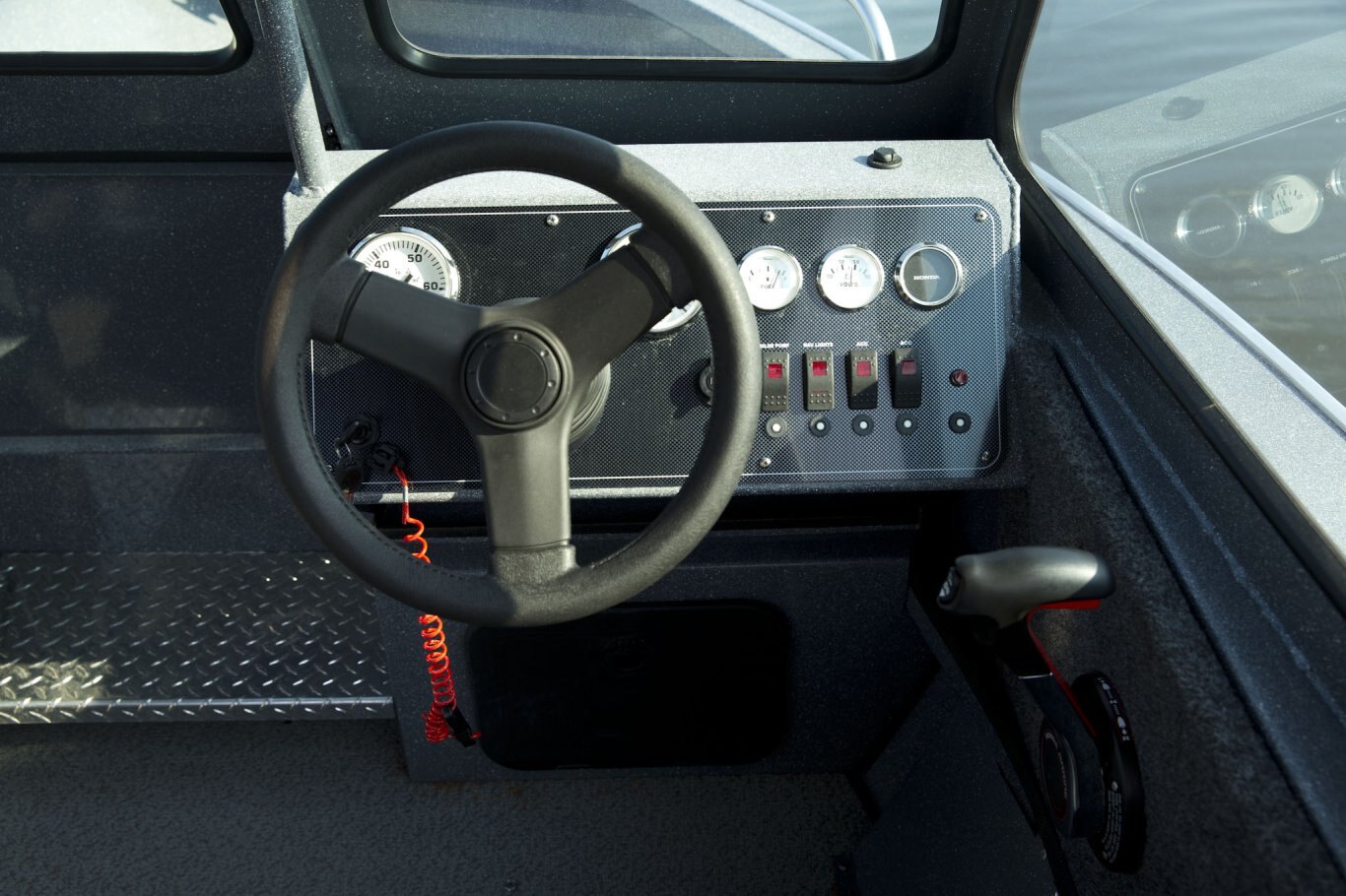 Miscellaneous Welded Cleats Coaming Gunnel w/ Watershed Channel Hydraulic Steering (OS Models Only) Toe Holds Tackle Tray Elevated Console Welded Safety Glass Windshield Bilge Pump