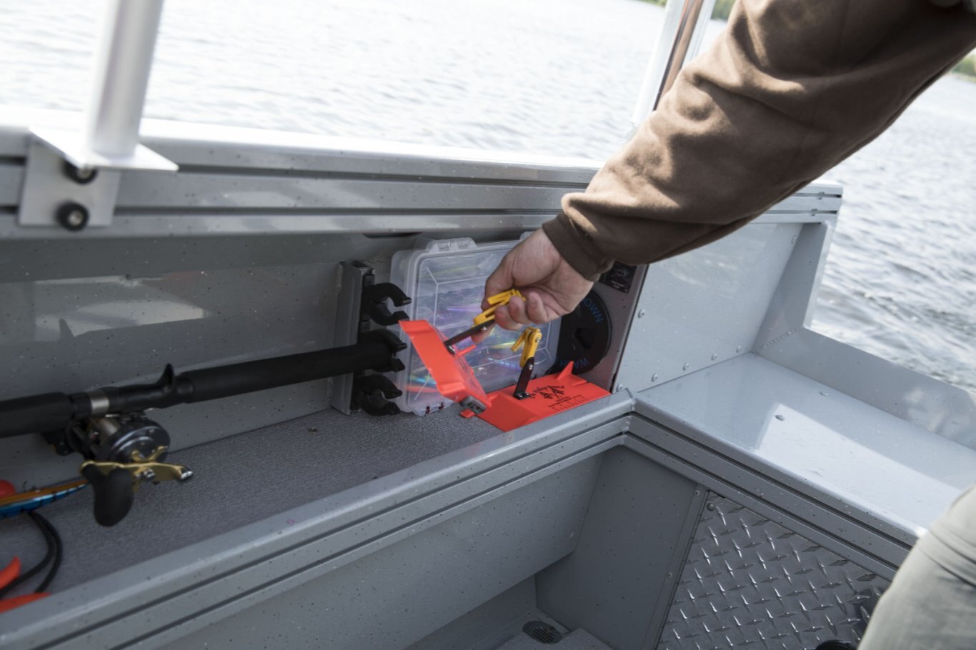 Storage Bow Fish Box Rod Storage Under Console Storage with Shelf Transom Fish Box w/ Sink Basin (OS models Only)