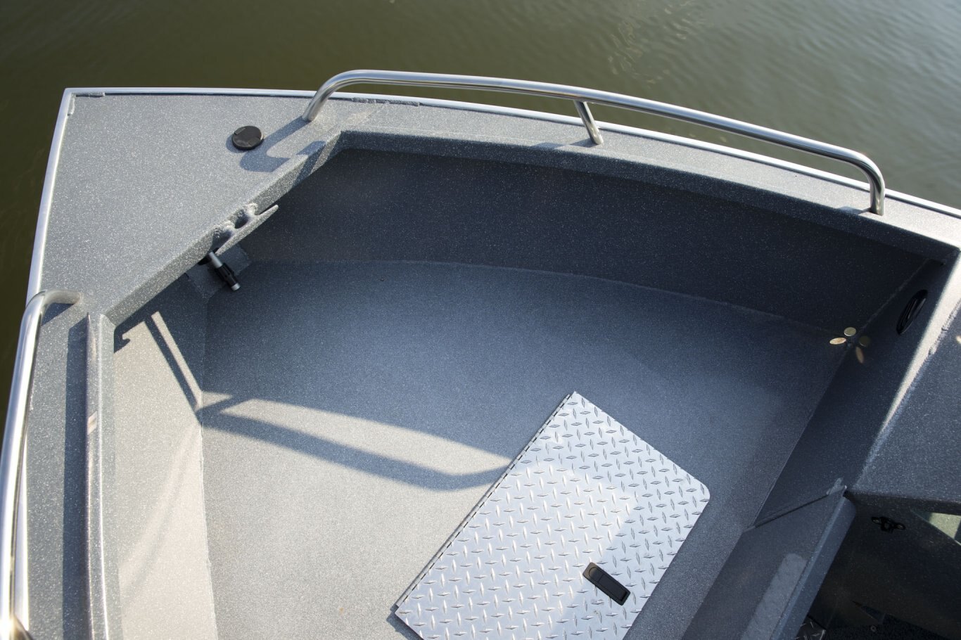 Miscellaneous Welded Cleats Coaming Gunnel w/ Watershed Channel Hydraulic Steering (OS Models Only) Toe Holds Tackle Tray Elevated Console Welded Safety Glass Windshield Bilge Pump