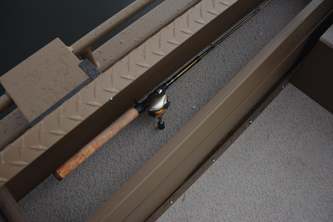 Miscellaneous Fishing Seats Transom Riser Fuel/Water Separator Seat Storage Box w/ Hatch Stainless Grab Bar Fish-On High Back Seat w/ Swivel Quick Disconnect Ram Mount Hummingbird Sonar Unit Trolling Motor Bow Mount Anchor Release 2- Down Rigger Brackets