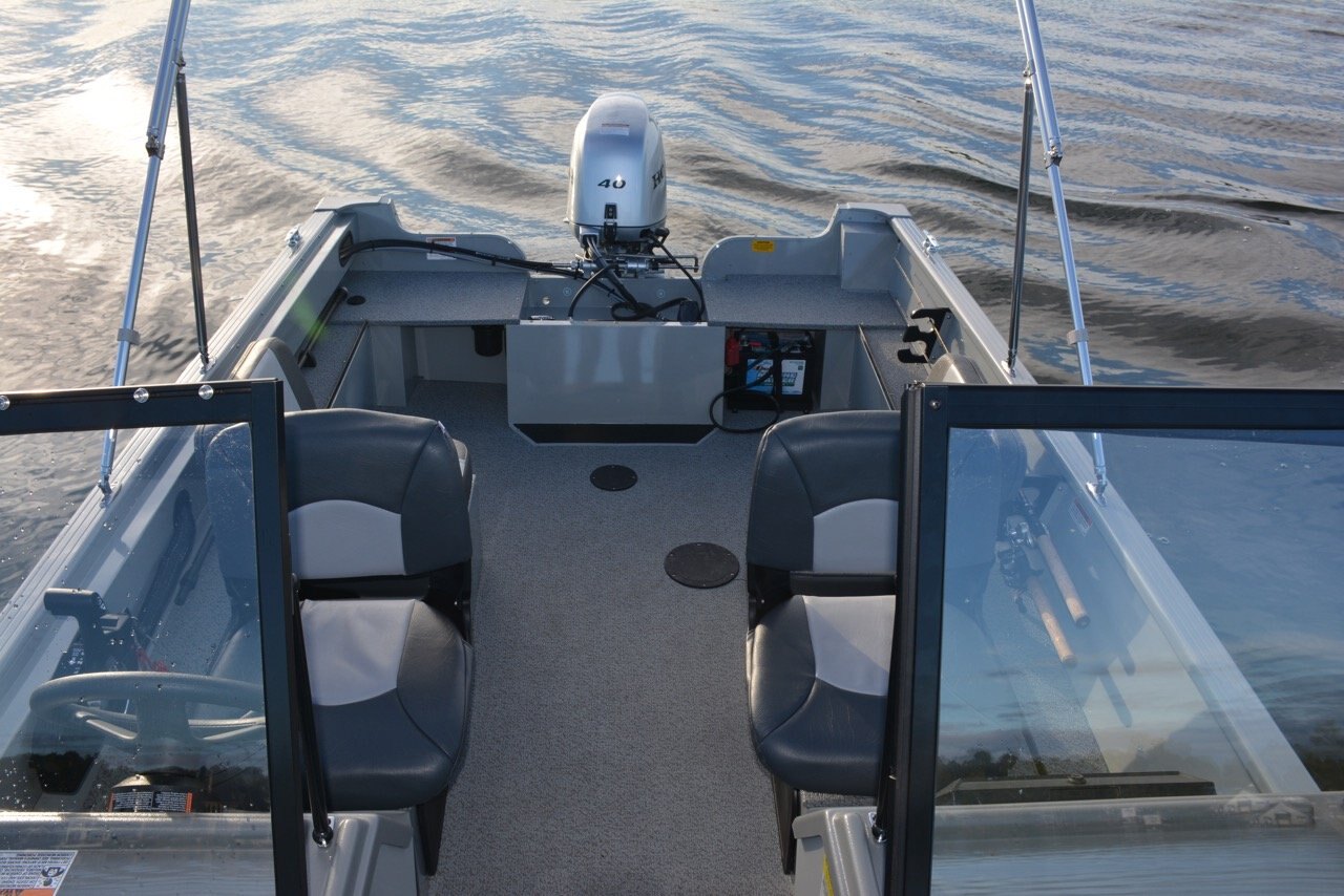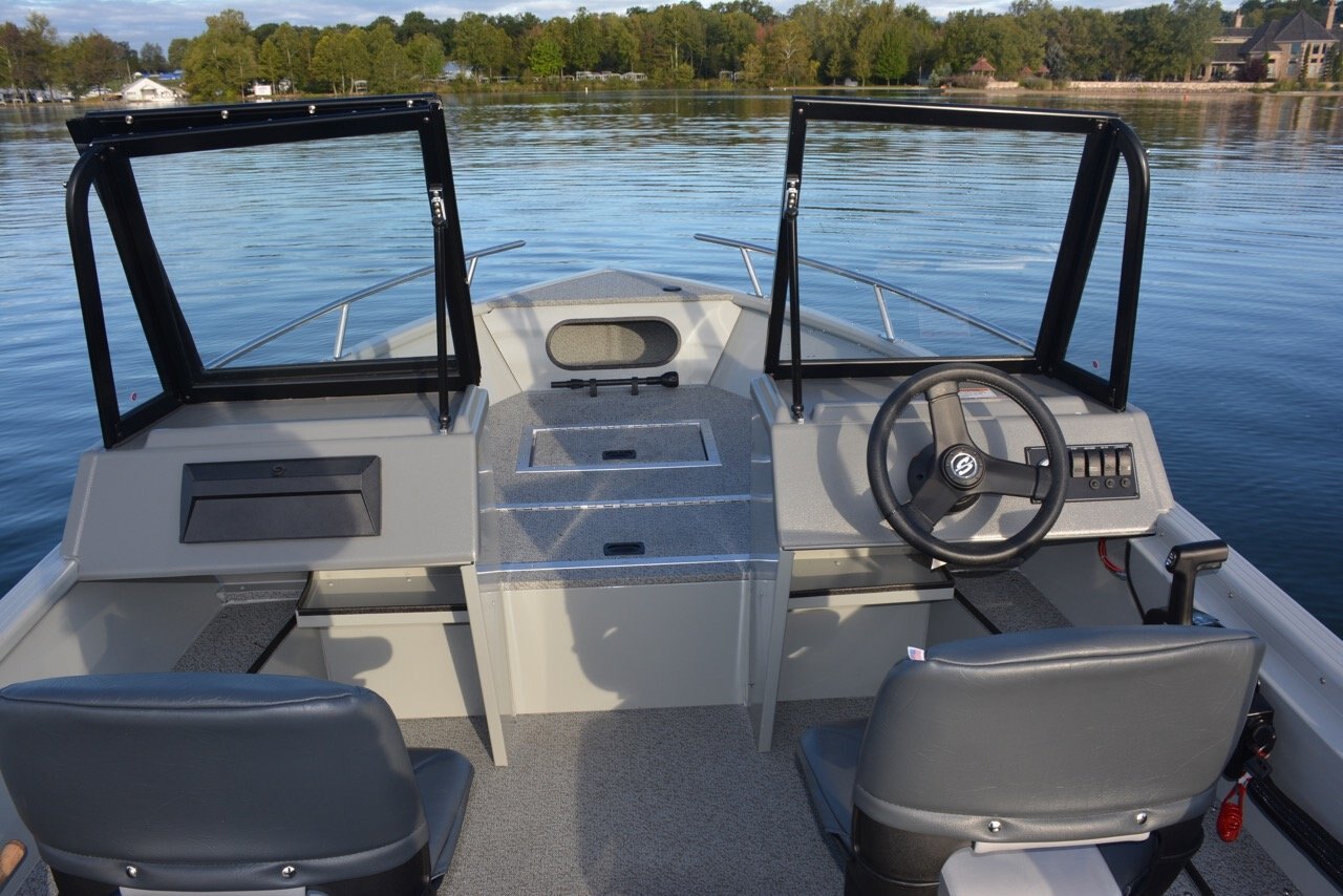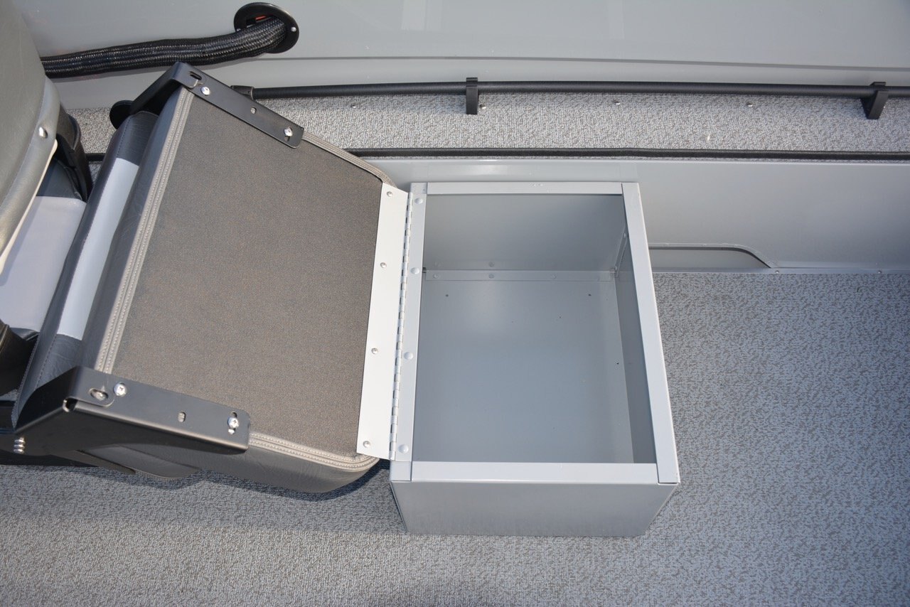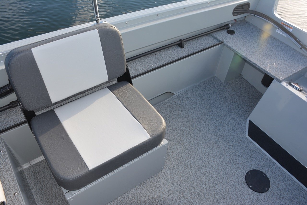 Miscellaneous 2- Seat Storage Boxes w/ Hatch Bow Fish Box Bow Rails Injected Foam Flotation Toe Holds Tackle Tray Under Console Storage w/ Shelf 2-Deluxe Cushioned/Foldable Seats Elevated Console Bilge Pump