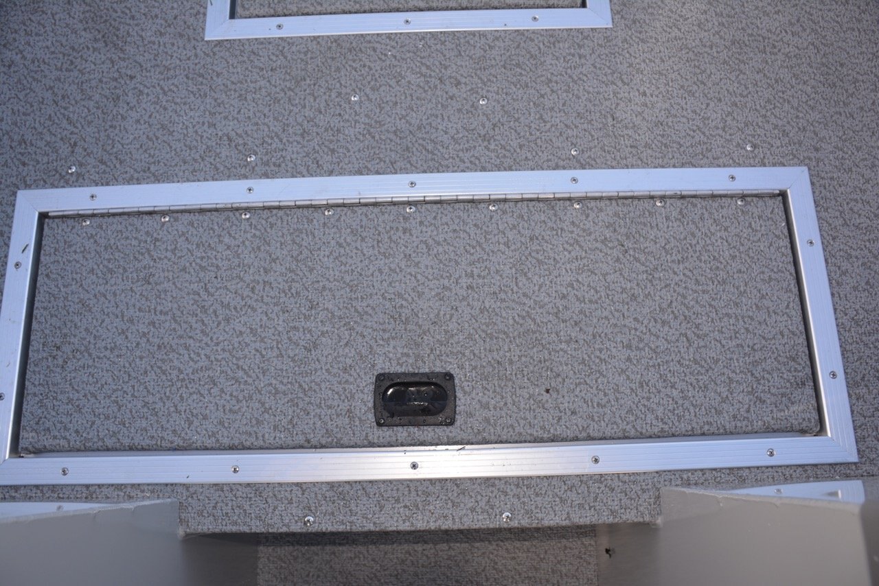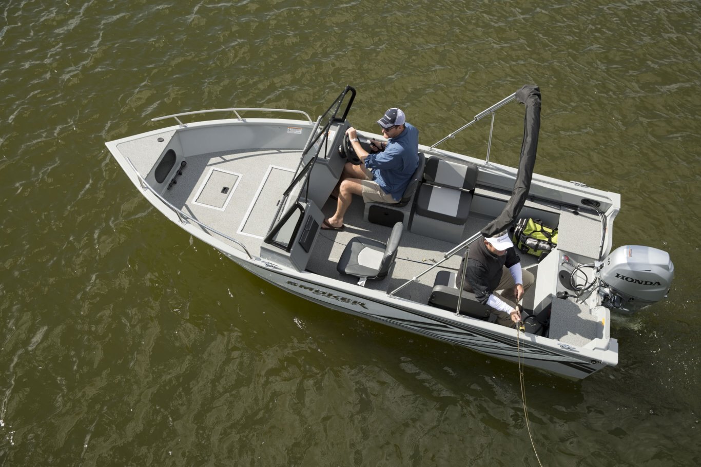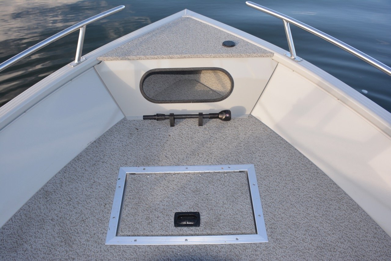 Miscellaneous 2- Seat Storage Boxes w/ Hatch Bow Fish Box Bow Rails Injected Foam Flotation Toe Holds Tackle Tray Under Console Storage w/ Shelf 2-Deluxe Cushioned/Foldable Seats Elevated Console Bilge Pump