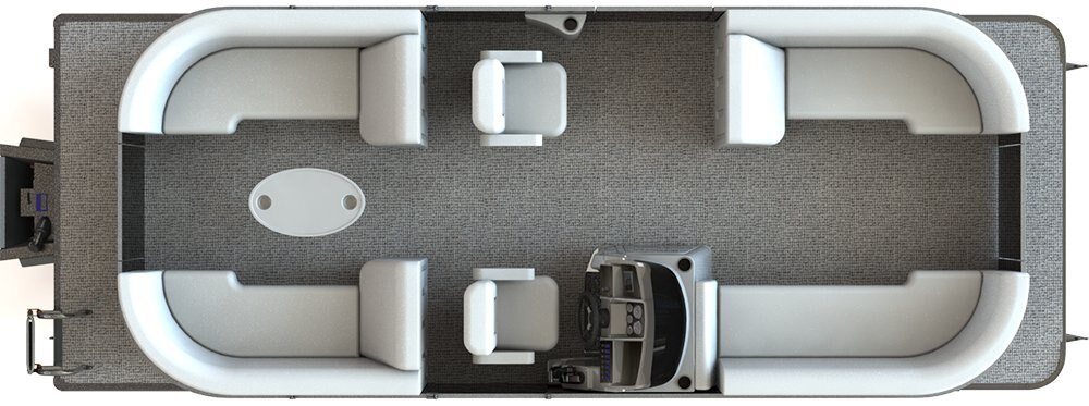 The Sylvan 8524 LZ pontoon is designed with comfort and convenience in mind, featuring four wrap-around couches that maximize seating capacity and ensure everyone has a comfortable spot to relax. With a full fiberglass console equipped with a large storage area, you can keep all your essentials organized and easily accessible throughout your journey. The addition of a four-step ladder makes boarding and disembarking effortless, whether you're taking a dip in the water or accessing a secluded beach. Plus, with the convenience of a power bimini top, you can easily adjust for shade or sunshine, ensuring everyone stays comfortable on the water. With its thoughtful design and premium features, the Sylvan 8524 LZ pontoon offers the perfect combination of luxury and functionality for an unforgettable boating experience.