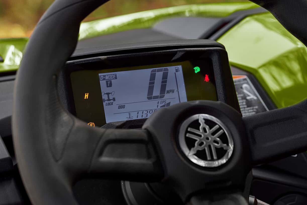 • The Proven Off-Road technology of Yamaha’s Ultramatic® system is unmatched in the industry. The CVT system utilizes a new, centrifugal wet clutch purpose-built to withstand the power from the 999cc engine, and a constant tension belt system for tackling obstacles in high rev range without fear of damaging the belt. When more torque is needed, the low gear is perfect for challenging conditions. The robust CVT system means less time switching gears and more fun taking on any terrain.