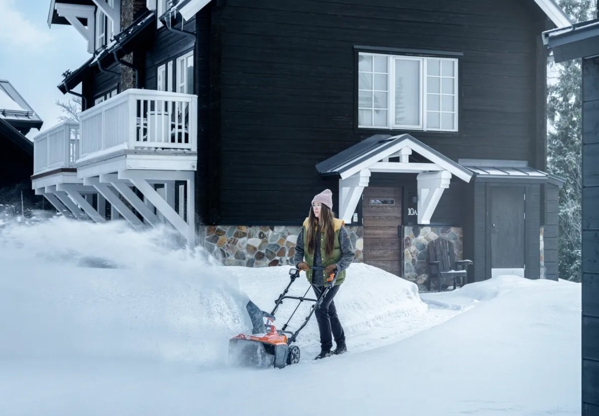 The compact design and foldable handle make the snow blower easy to store in tight spaces.